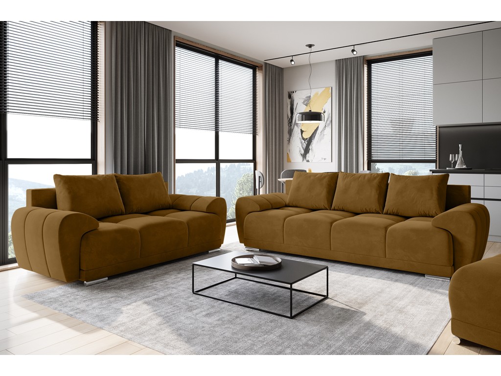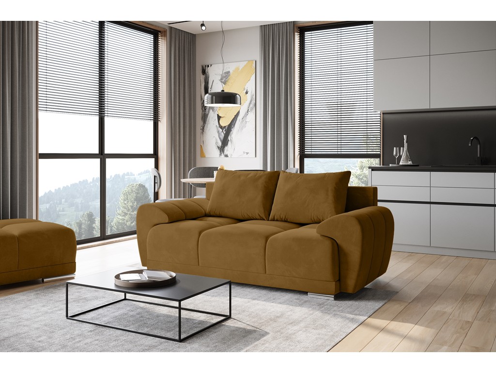 Sofa Bego 2 wnosi do wnętrza przytulny, miodowy akcent i nowoczesną lekkość.