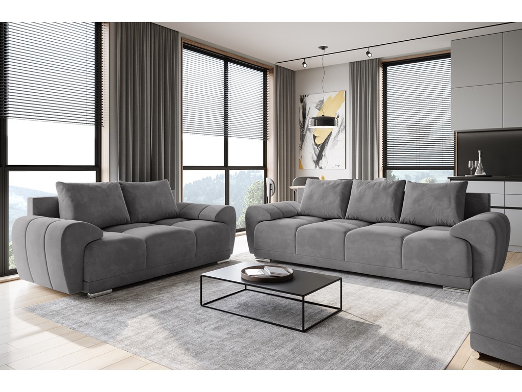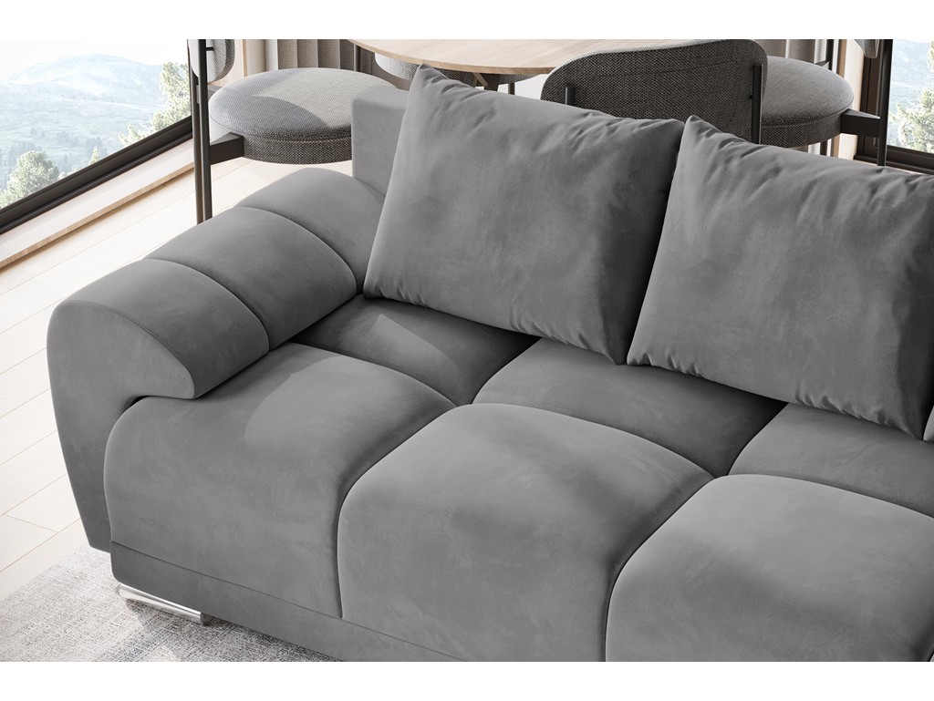 Szary odcień tkaniny i smukła forma czynią z niej mebel łatwy do zestawienia z różnymi stylami aranżacji.