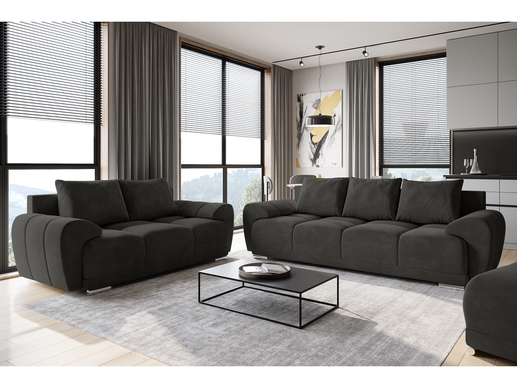 Sofa Bego 2 MO-95 to stylowy model w modnym, ciemnoszarym odcieniu, idealny do nowoczesnych wnętrz. Tapicerowana miękkim welurem Monolith 95 o właściwościach Easy Clean łączy elegancję z praktycznym komfortem. Smukła bryła i subtelne przeszycia podkreślają minimalistyczny charakter kolekcji Bego, czyniąc z niej idealny wybór do mniejszych salonów, biur czy przestrzeni open space. ⟵Zobacz całą kolekcję sof