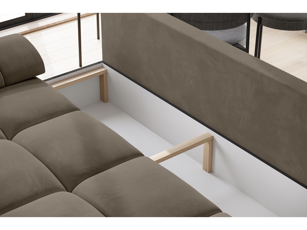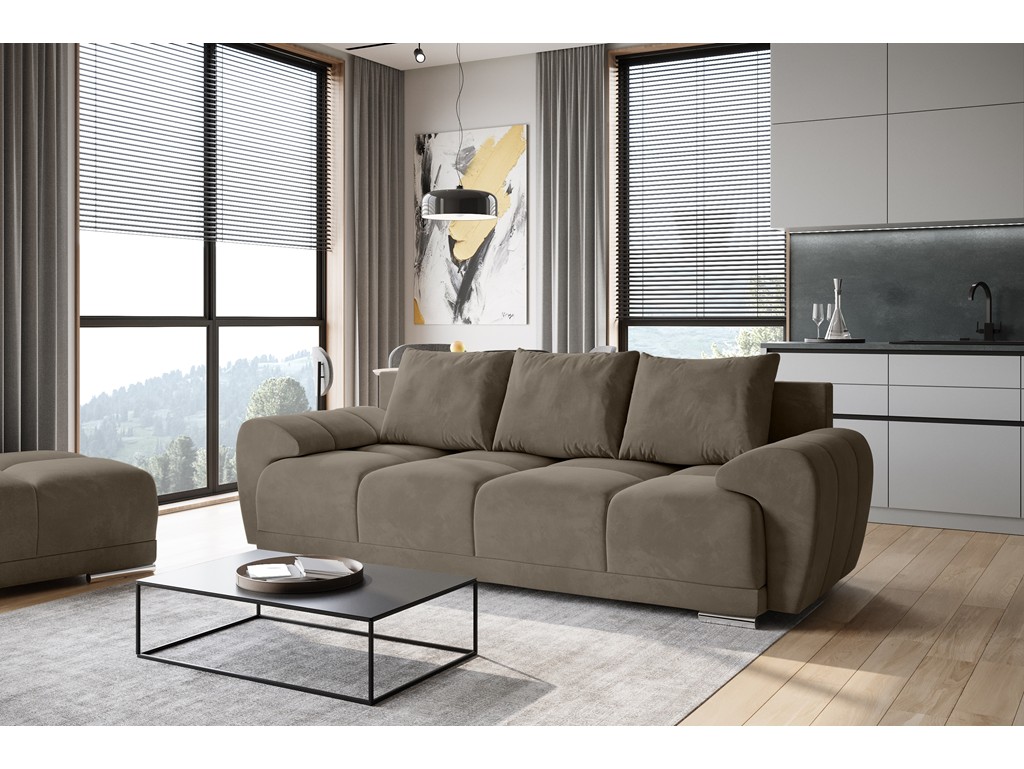 Sofa Bego 3 łączy funkcjonalność i elegancję, tworząc przestrzeń do wypoczynku i okazjonalnego spania.