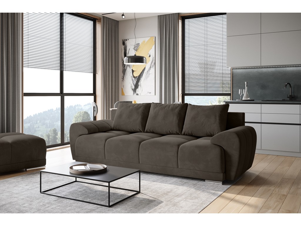 Sofa Bego 3 z funkcją spania welur Monolith 20 szary brąz