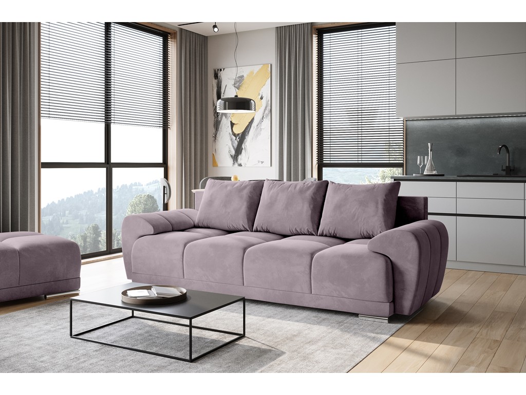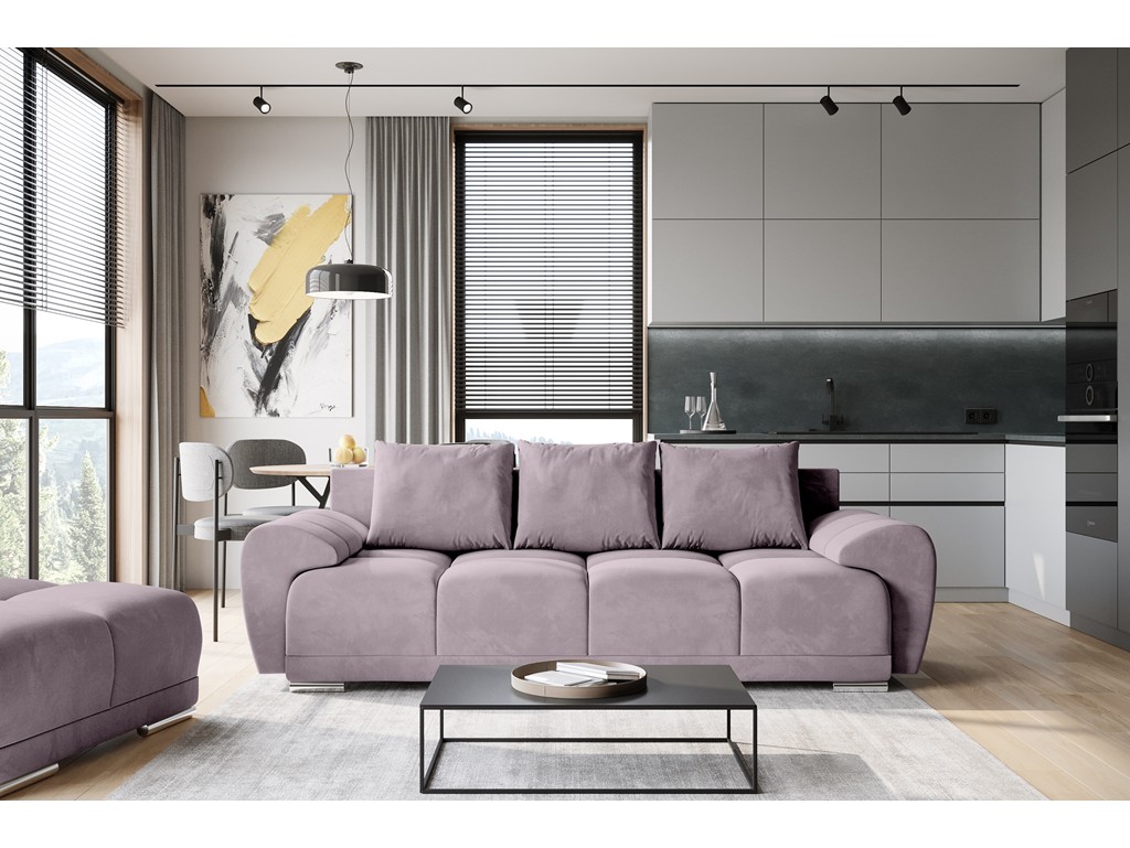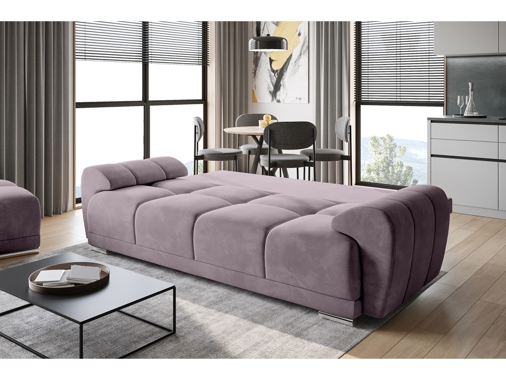 Sofa Bego 3 w subtelnym wrzosowym odcieniu to połączenie elegancji i wygody. Miękki, aksamitny welur Monolith 62 wprowadza do wnętrza spokój i harmonię, doskonale komponując się z jasnym drewnem i pastelowymi dodatkami. Dzięki funkcji spania i pojemnikowi na pościel sofa sprawdzi się zarówno w salonie, jak i w pokoju gościnnym. ⟵Zobacz całą kolekcję sof