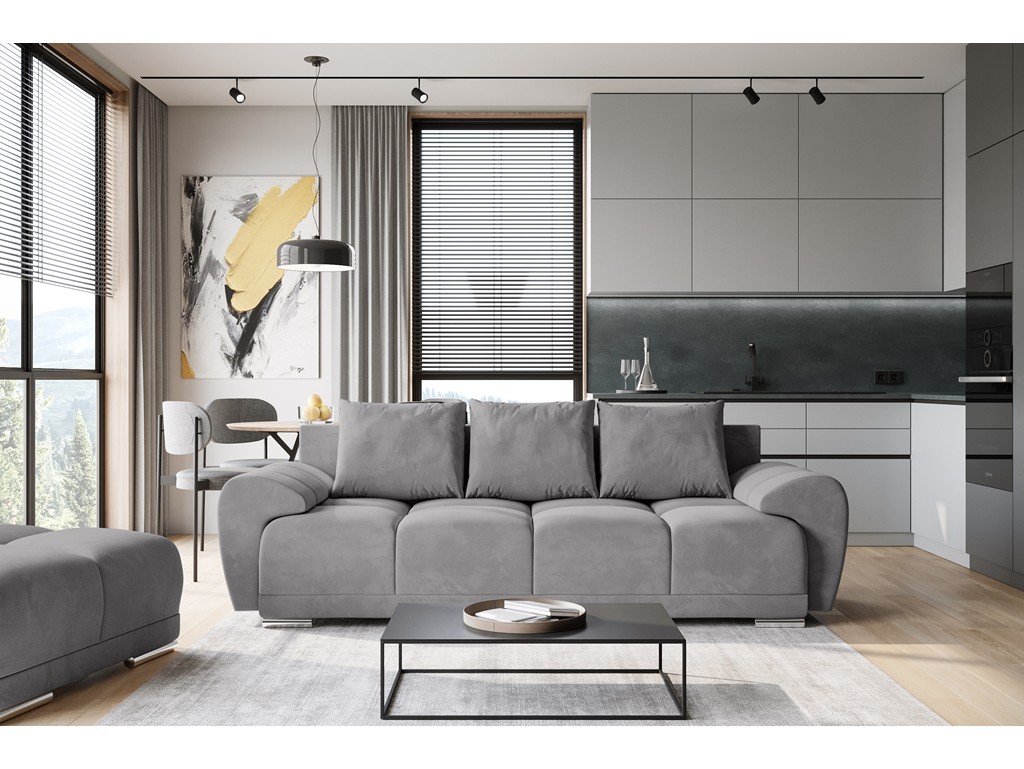 Sofa Bego 3 z funkcją spania welur Monolith 85 szary