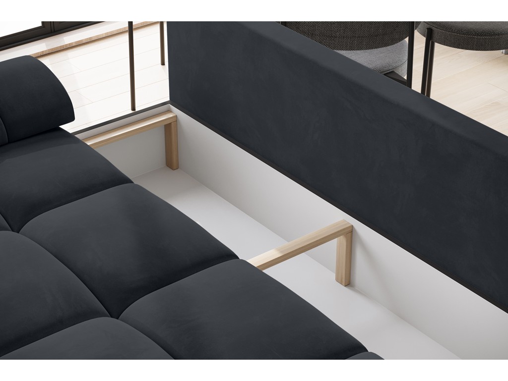 Sofa Bego 3 w ciemnym graficie łączy elegancję z praktycznością. Miękki welur Monolith 97 z technologią easy clean zapewnia komfort i łatwą pielęgnację, a funkcja spania oraz pojemnik na pościel czynią ją funkcjonalnym meblem do salonu lub pokoju gościnnego. Dostawa w ciągu 21-30 dni. ⟵Zobacz całą kolekcję sof