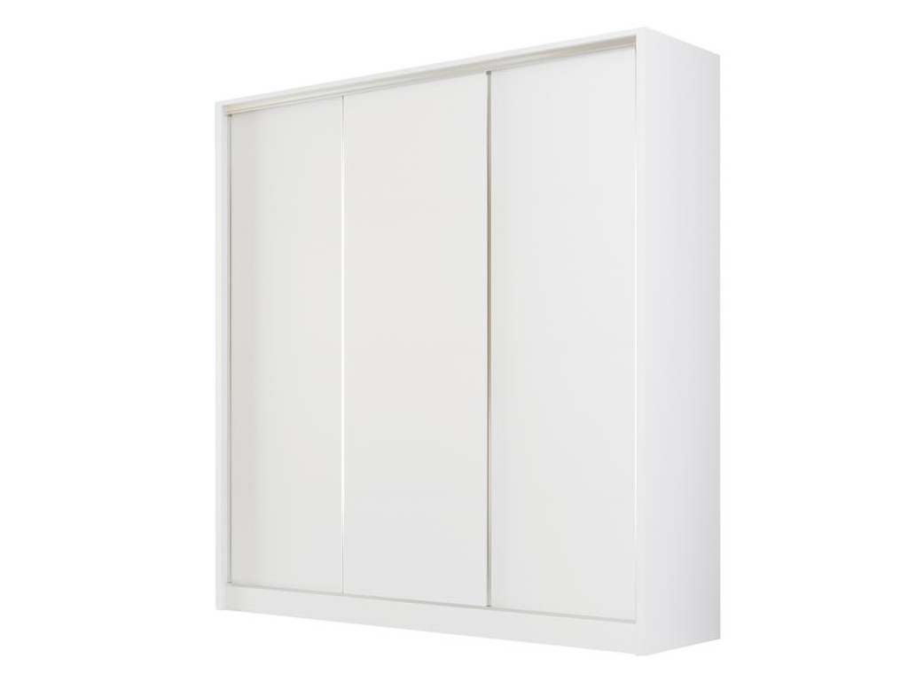 Szafa Meblo w rozmiarze 200 cm w odcieniu biały mat to nowoczesny mebel dla osób ceniących jasne i harmonijne wnętrza. Trzy gładkie, matowe drzwi przesuwne ułatwiają dostęp do przestronnego wnętrza, które zawiera półki, przegrody oraz drążek na ubrania wiszące. Solidna konstrukcja i przemyślany układ sprawiają, że szafa sprawdzi się w każdej sypialni lub garderobie.