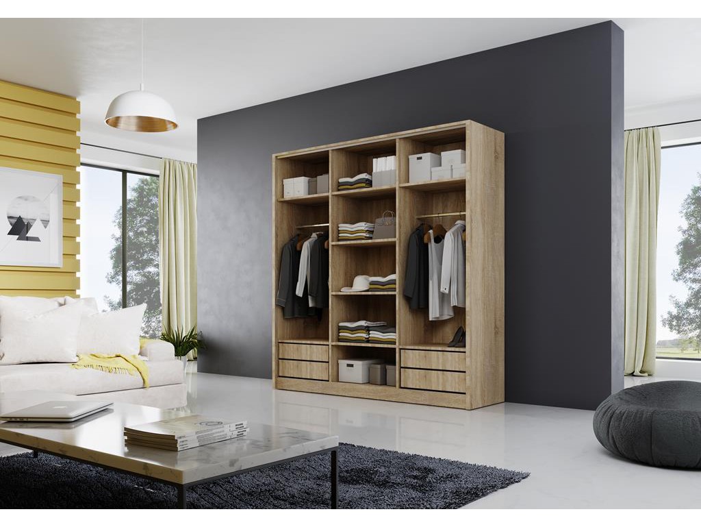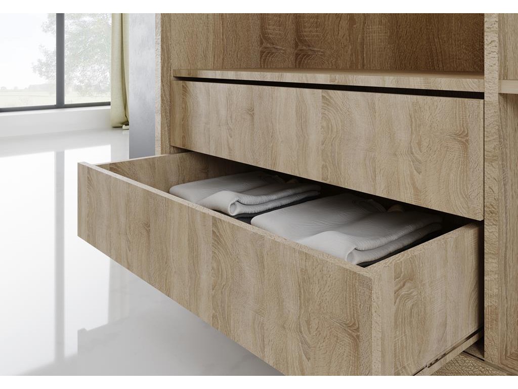 Wybarwienie sonoma dodaje lekkości i naturalności, dzięki czemu szafa dobrze wpisuje się w jasne, nowoczesne aranżacje.