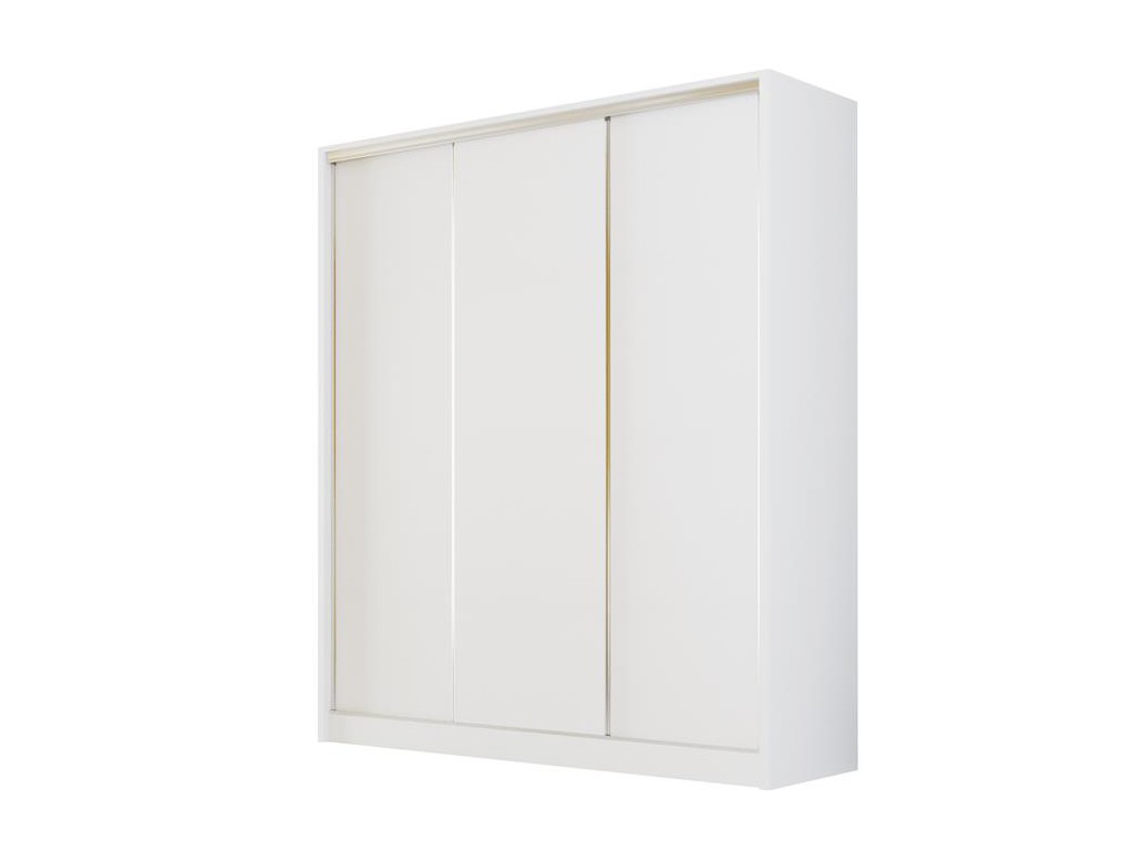 Szafa Meblo w rozmiarze 180 cm w nowoczesnym kolorze biały mat to jasny, minimalistyczny mebel do sypialni i garderoby. Trzy gładkie fronty z aluminiowymi uchwytami listwowymi zapewniają nowoczesny wygląd, a pojemne wnętrze z półkami, przegrodami i drążkiem na ubrania ułatwia organizację odzieży. Model łączy funkcjonalność z estetyką i jest dostarczany w paczkach do samodzielnego montażu.