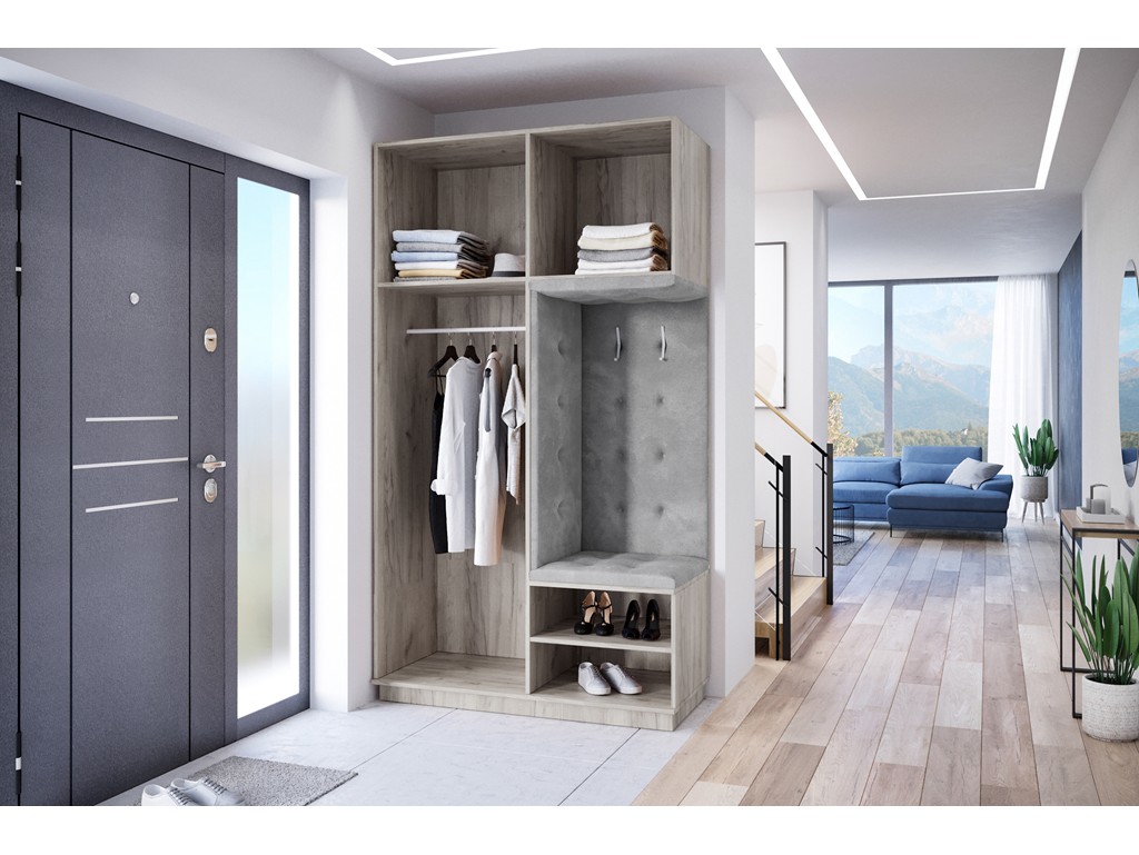 Wnęka z siedziskiem zapewnia funkcjonalne miejsce do zakładania obuwia, a zastosowany na tapicerce materiał Monolith jest łatwy w utrzymaniu czystości i przyjemny w dotyku.