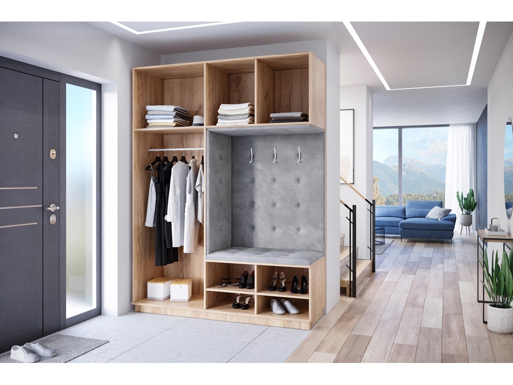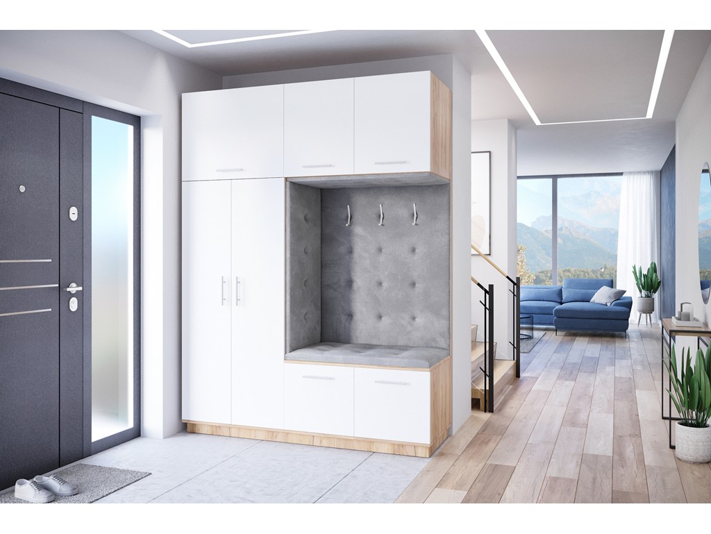 Wnęka z siedziskiem zapewnia funkcjonalne miejsce do zakładania obuwia, a zastosowany na obiciu materiał Monolith jest łatwy w czyszczeniu i posiada właściwości hydrofobowe.