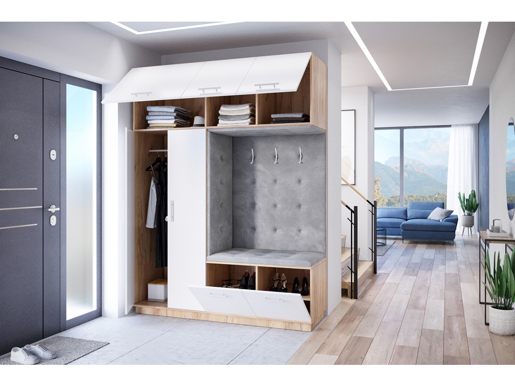 System uchylny i liczne półki sprawiają, że szafa jest wyjątkowo funkcjonalna i pozwala utrzymać porządek w codziennym użytkowaniu.