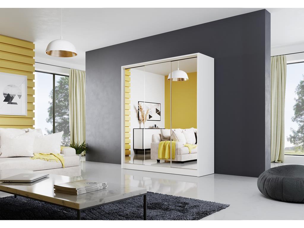 Biały mat wprowadza świeżość i lekkość do każdego wnętrza, a lustra zwiększają funkcjonalność szafy, umożliwiając kontrolę wyglądu w ciągu dnia.