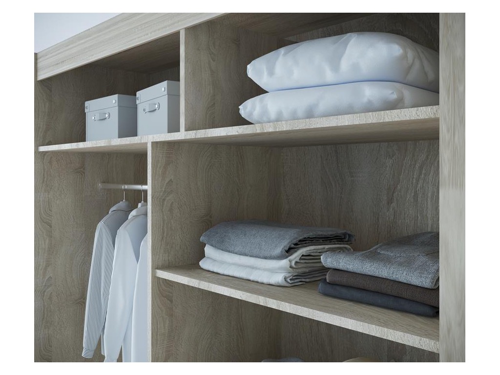 Pojemne wnętrze z półkami i drążkiem umożliwia wygodne przechowywanie odzieży i dodatków.
