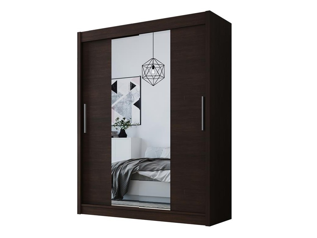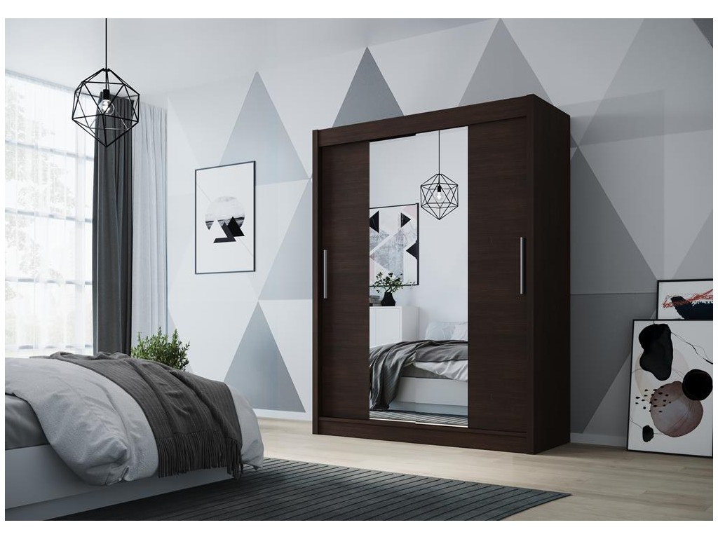 Szafa przesuwna Doti 2 choco 120 łączy klasyczny, ciepły odcień drewna z funkcjonalnym lustrem na frontach, które optycznie powiększa przestrzeń. Dwudrzwiowy system przesuwny ułatwia dostęp do pojemnego wnętrza, a półki i drążek pozwalają na wygodne przechowywanie ubrań i dodatków. Możliwość dokupienia oświetlenia LED dodatkowo podkreśla elegancję mebla.