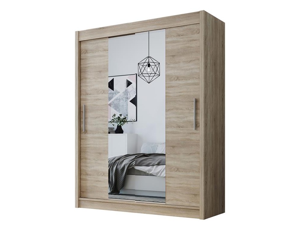 Szafa przesuwna Doti 2 sonoma 120 to funkcjonalny mebel do sypialni lub pokoju, łączący jasne, naturalne wybarwienie z pojemnym wnętrzem. Dwudrzwiowy system przesuwny zapewnia wygodny dostęp do wnętrza, a lustro optycznie powiększa przestrzeń. Opcjonalne oświetlenie LED dodatkowo podnosi komfort użytkowania szafy. ⟵Zobacz całą kolekcję szaf Doti