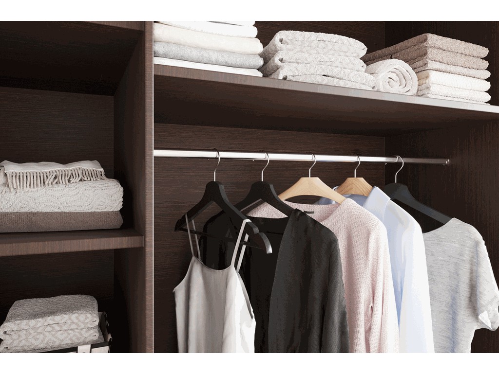 Praktycznie rozmieszczone półki i drążek pozwalają utrzymać garderobę w porządku.