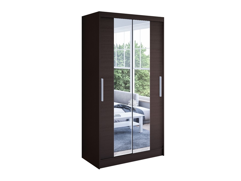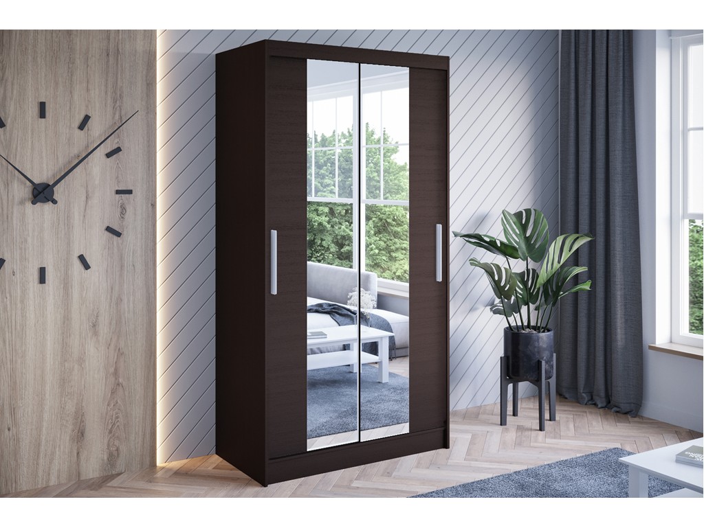 Szafa przesuwna Kalo II 100 choco łączy eleganckie, ciemne wybarwienie inspirowane drewnem z praktycznym systemem przesuwnych drzwi. Lustro na froncie optycznie powiększa przestrzeń, a przemyślane wnętrze z półkami i drążkiem zapewnia wygodne przechowywanie odzieży codziennej i sezonowej. Dostawa realizowana jest w ciągu 5-12 dni roboczych. ⟵Zobacz całą kolekcję szaf Kalo