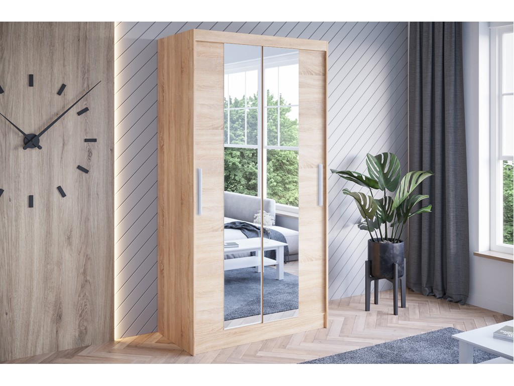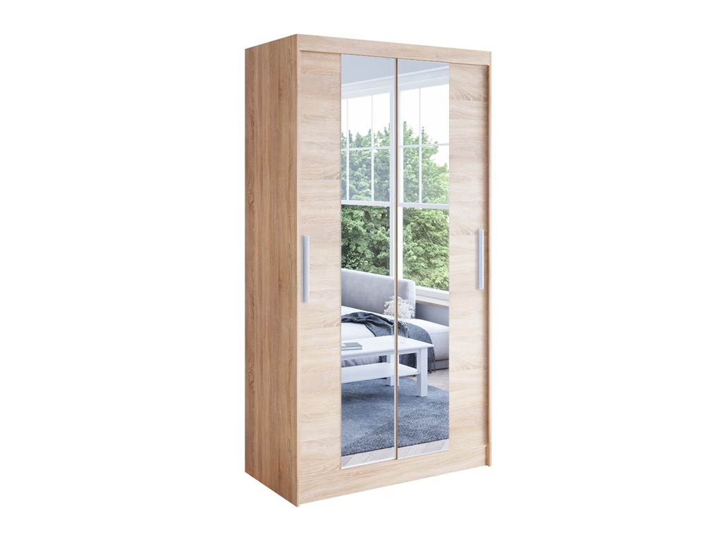 Szafa przesuwna Kalo II 100 sonoma to funkcjonalny mebel do sypialni lub pokoju gościnnego. Jasny dekor sonoma wprowadza ciepło i przytulność, a lustro na froncie optycznie powiększa przestrzeń. Model został zaprojektowany z myślą o wygodnym przechowywaniu i łatwym montażu - dostawa w 5-12 dni roboczych.