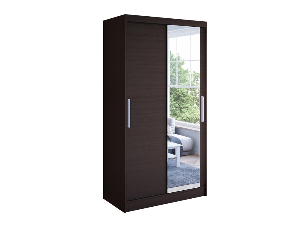 Szafa przesuwna Kalo VI 100 choco łączy elegancki, ciemny odcień z funkcjonalnym wnętrzem. Lustro na froncie optycznie powiększa przestrzeń, a system przesuwny SEVROLL umożliwia wygodny dostęp do pojemnych półek i drążka. Idealna do sypialni, garderoby lub przedpokoju, dostępna z szybką dostawą.
