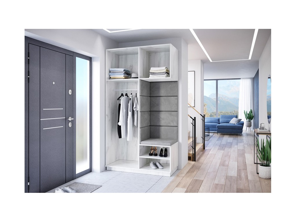 Garderoba wprowadza do wnętrza luksusowy akcent i podkreśla elegancję korytarza.