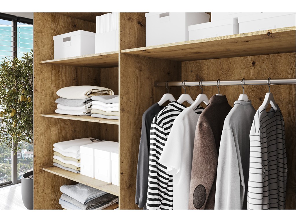 Solidna konstrukcja i przemyślany układ półek oraz drążków gwarantują wygodę codziennego użytkowania.