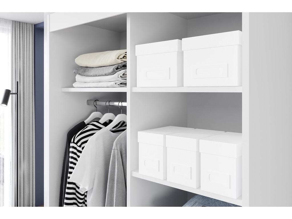 Mimo niewielkiej szerokości jej wnętrze oferuje praktyczne miejsce na ubrania w formie półek, przegród i drążka.