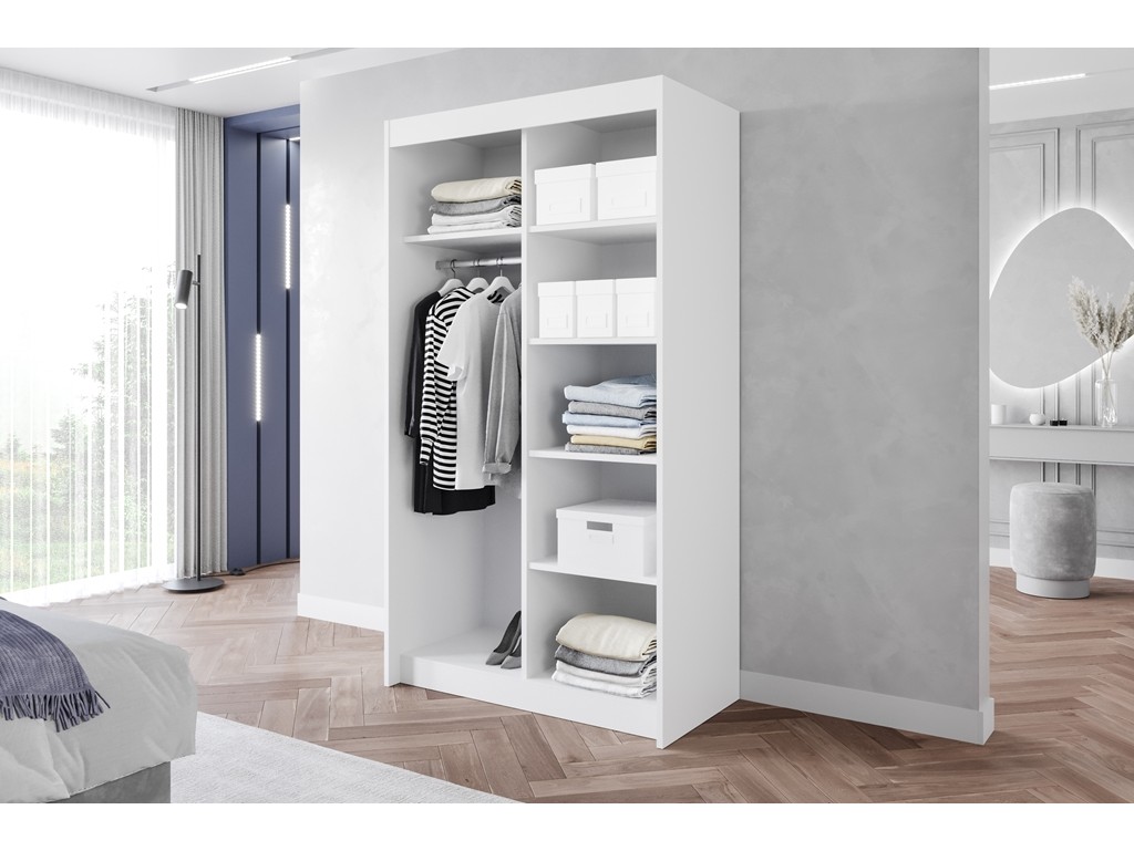 Szafa Leso 1 120 biały mat sprawia, że wnętrze wydaje się jaśniejsze i bardziej uporządkowane.