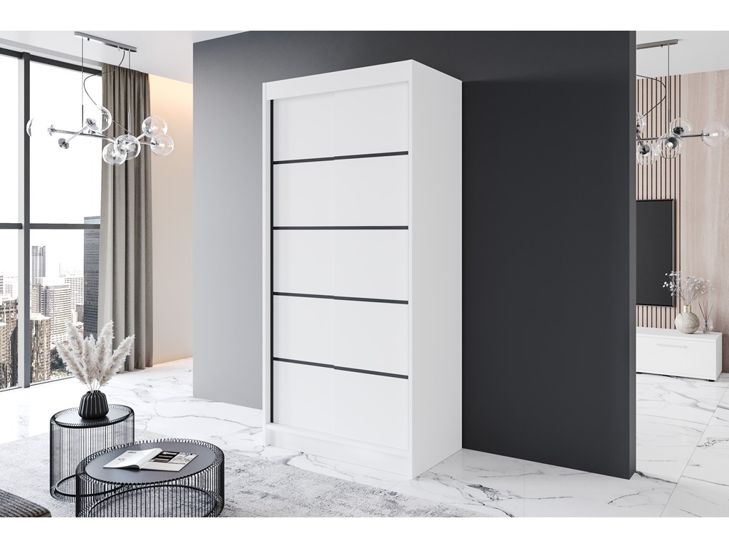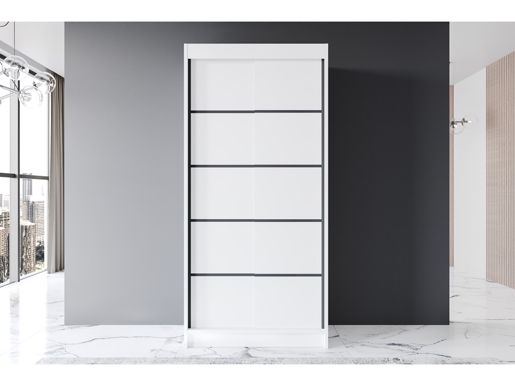 Szafa przesuwna Prim IV 100 w białym matowym wybarwieniu z czarnymi wstawkami to minimalistyczny mebel, który optycznie powiększa przestrzeń i wprowadza świeżość do wnętrza. Doskonale sprawdza się w mniejszych pokojach, oferując praktyczne rozwiązania przechowywania. Solidna konstrukcja i możliwość montażu LED zwiększają funkcjonalność szafy.⟵Zobacz całą kolekcję szaf Prim