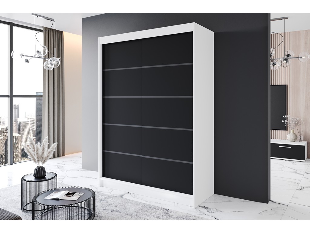 Szafa przesuwna Prim IV biały/czarny mat 150 cm