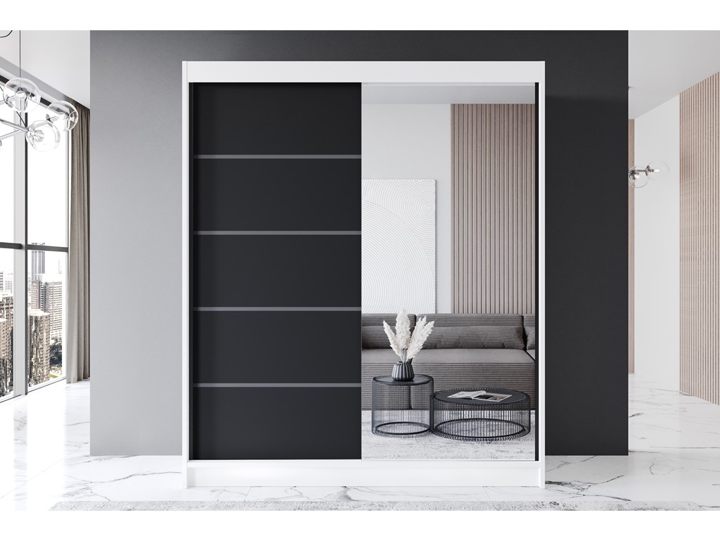 Szafa przesuwna Prim III biały/czarny mat 180 cm
