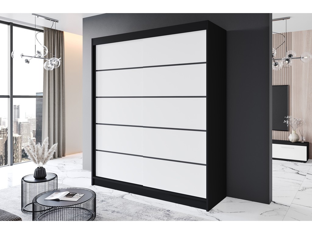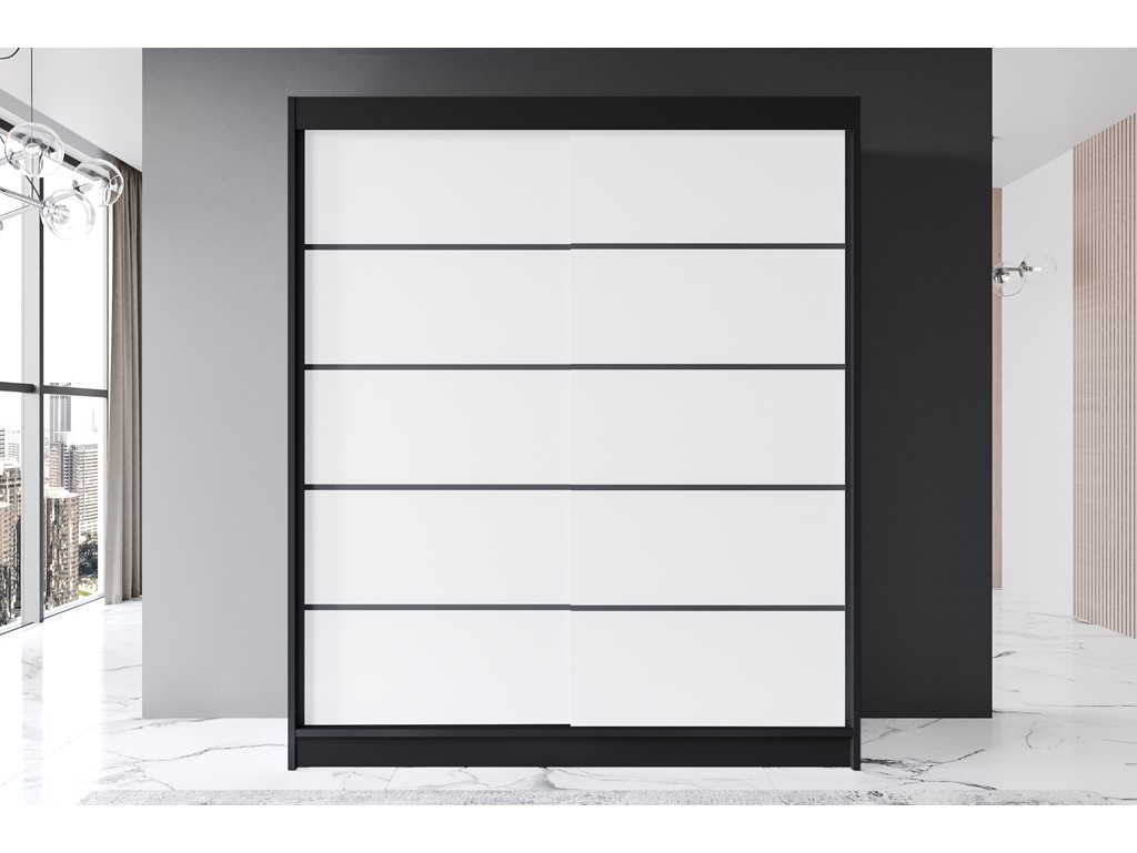 Szafa przesuwna Prim IV czarny/biały mat 180 cm
