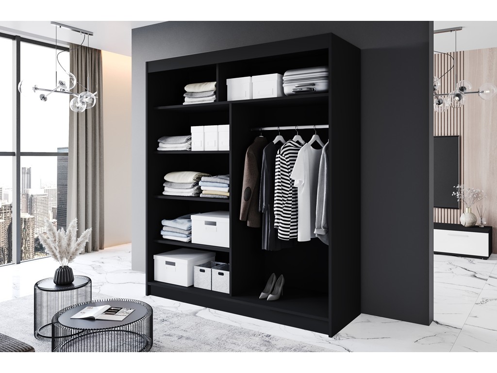 Szafa przesuwna Prim IV 180 czarny/biały mat to kompaktowy mebel, który sprawdzi się w sypialni, przedpokoju lub pokoju dziecka. Minimalistyczny design w kontrastowych kolorach wprowadza nowoczesny charakter do wnętrza, a pomimo niewielkich wymiarów szafa oferuje pojemność wystarczającą do przechowywania odzieży i akcesoriów. Dostawa w standardzie krajowym jest darmowa, a mebel gotowy do samodzielnego montażu.⟵Zobacz całą kolekcję szaf Prim