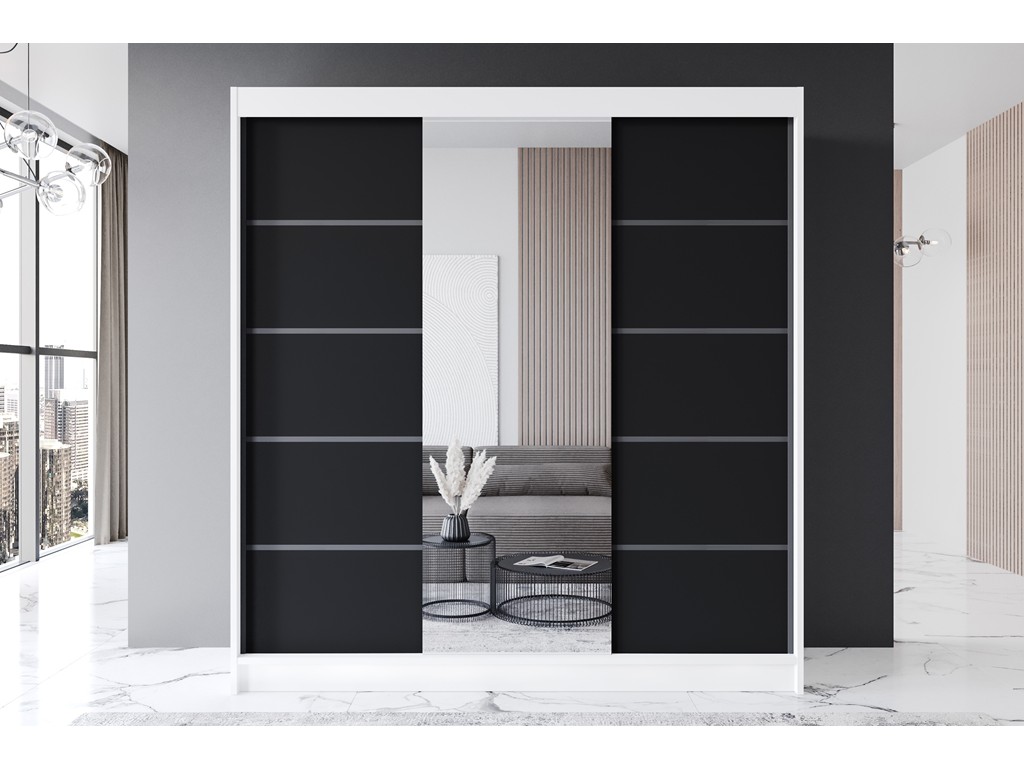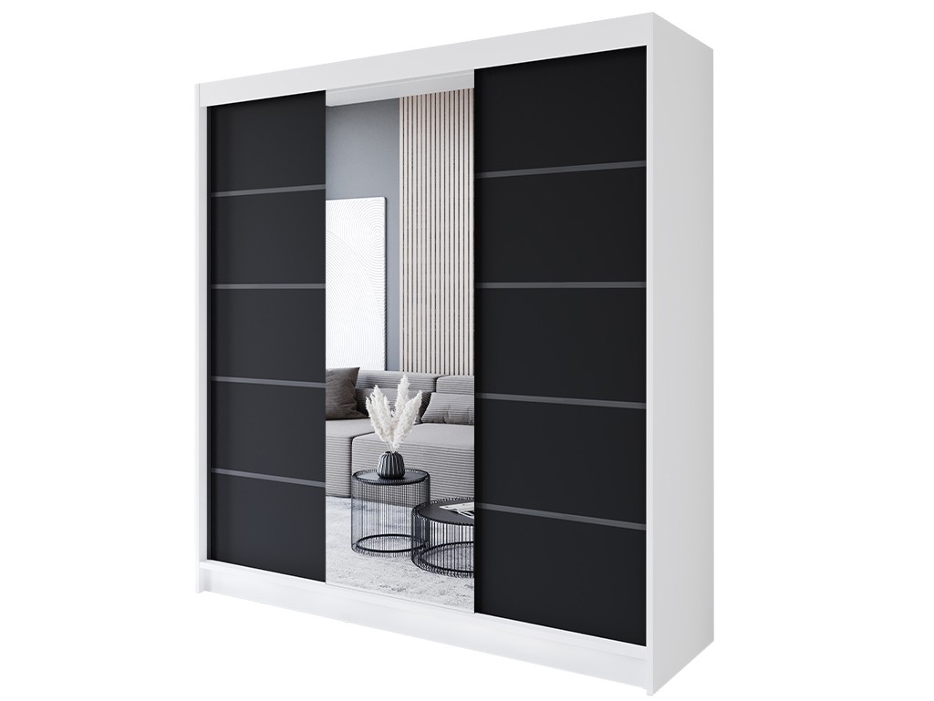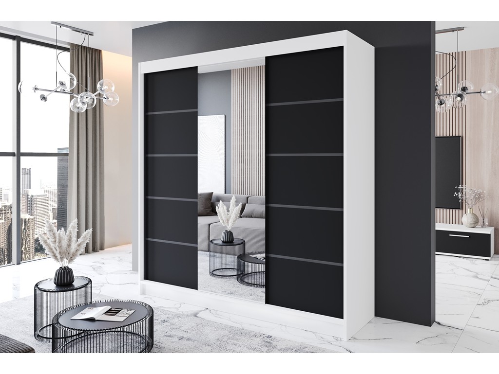 Szafa przesuwna Rimi VI biały/czarny mat 200 cm