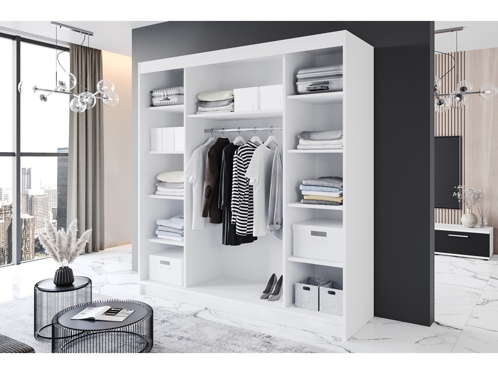 Szafa Rimi VI 200 biały/czarny mat łączy elegancki wygląd z funkcjonalnością.