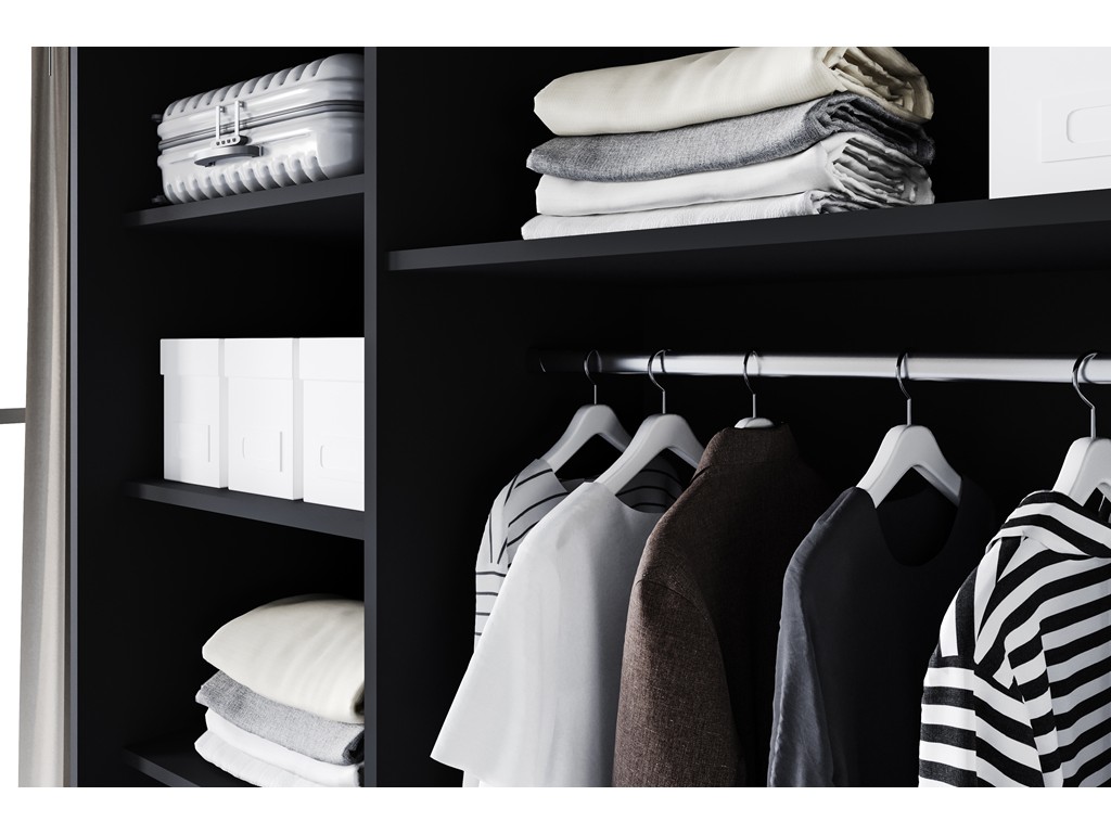 Solidna konstrukcja i trwałe materiały zapewniają długotrwałe użytkowanie, a pojemne półki i drążek umożliwiają wygodną organizację garderoby.