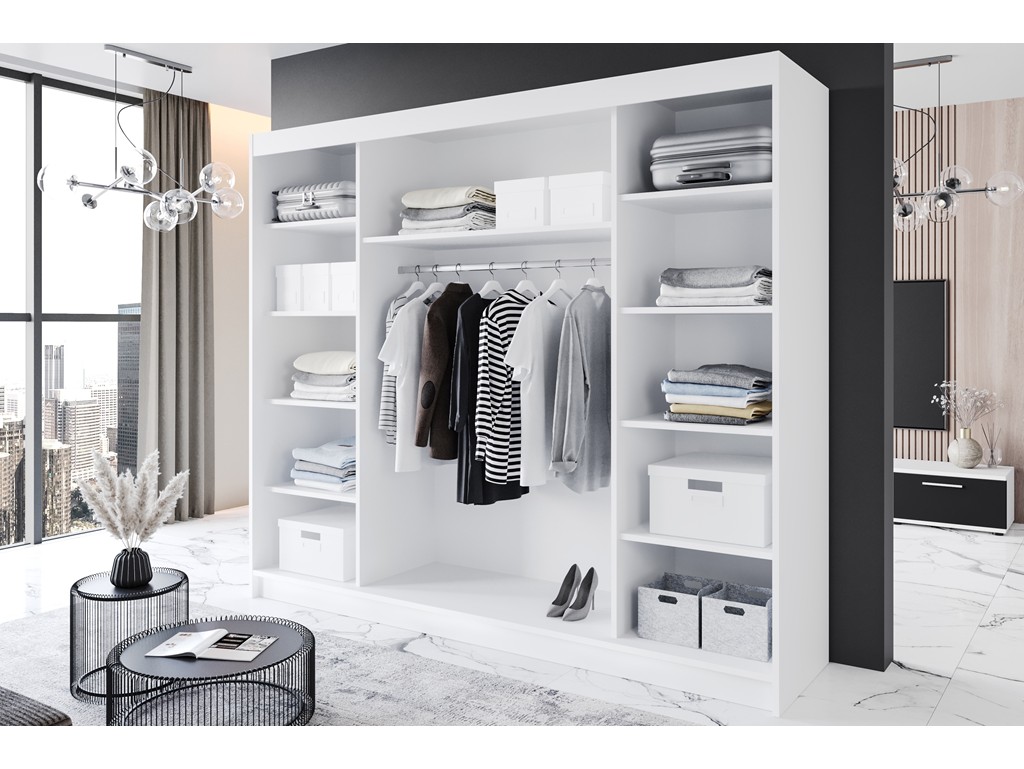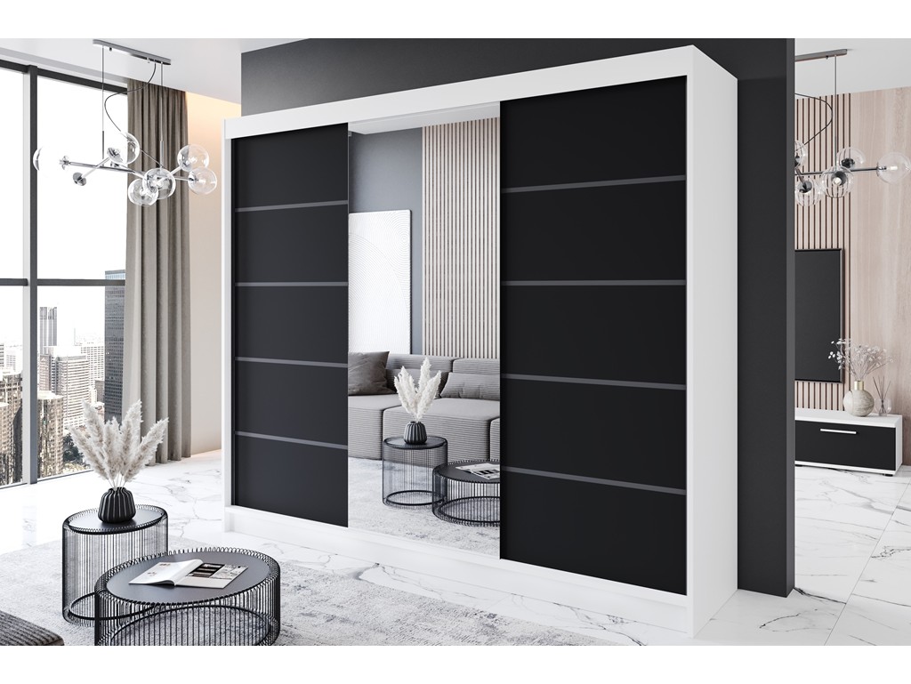 Szafa Rimi VI 250 biały/czarny mat łączy funkcjonalność z elegancką estetyką.