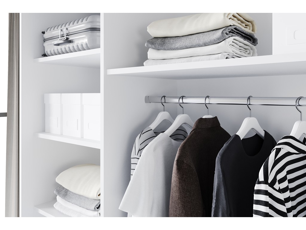 Duża pojemność pozwala przechowywać zarówno odzież wiszącą, jak i składane ubrania.