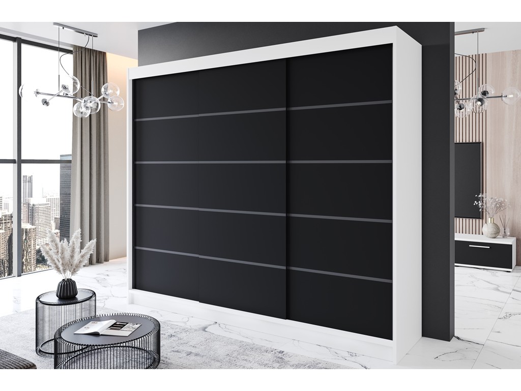 Szafa Rimi VII 250 biały/czarny mat łączy estetykę z funkcjonalnością.