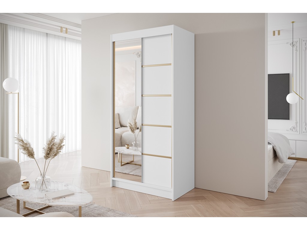 Szafa przesuwna Gold 3 biała z lustrem 100 cm