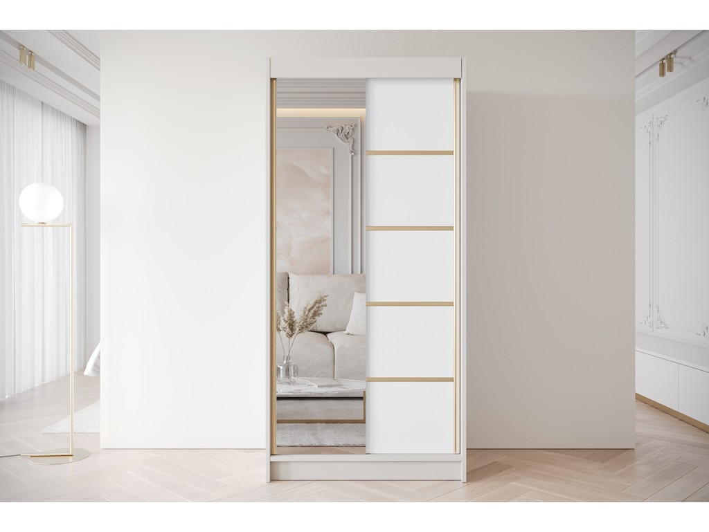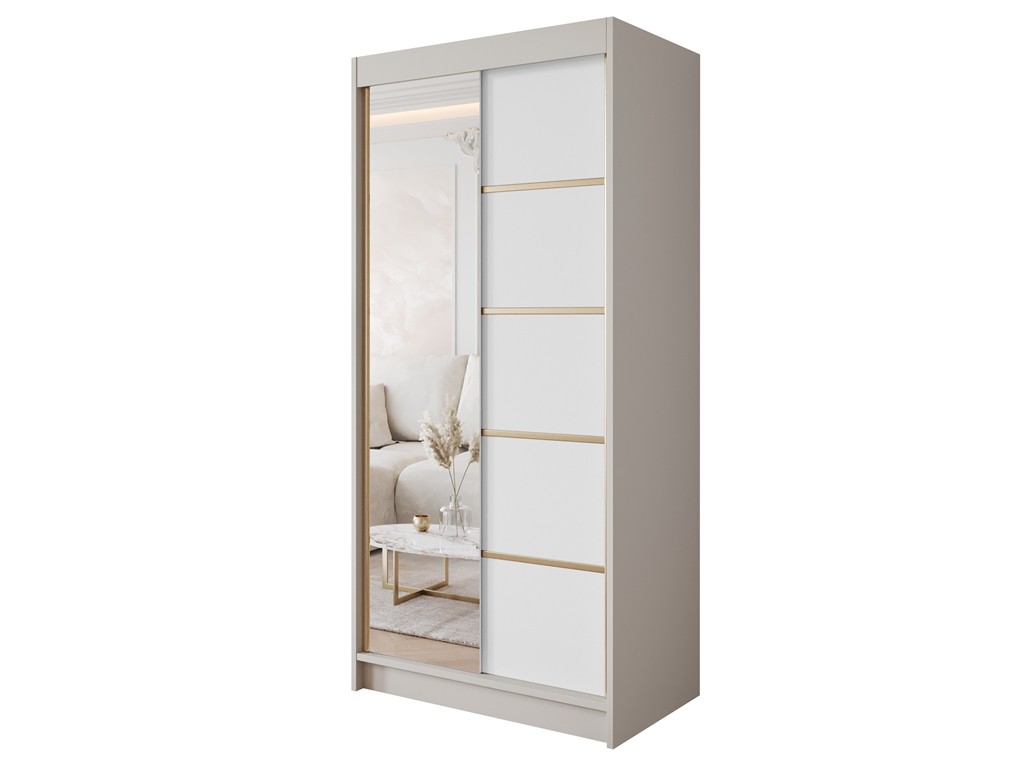 Szafa przesuwna Gold 3 kaszmir/biały z lustrem 100 cm