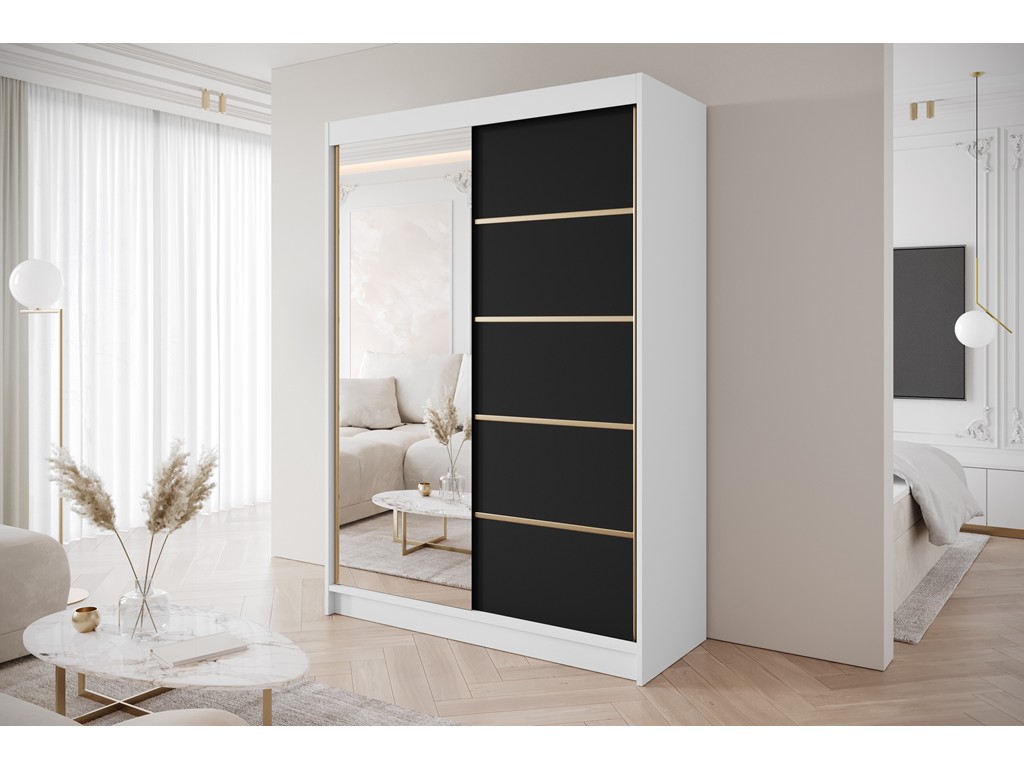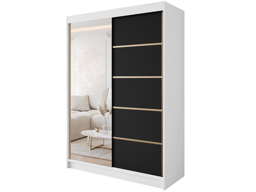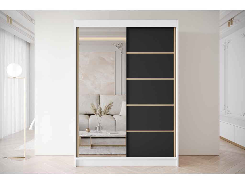Szafa przesuwna Gold 3 biały/czarny z lustrem 150 cm