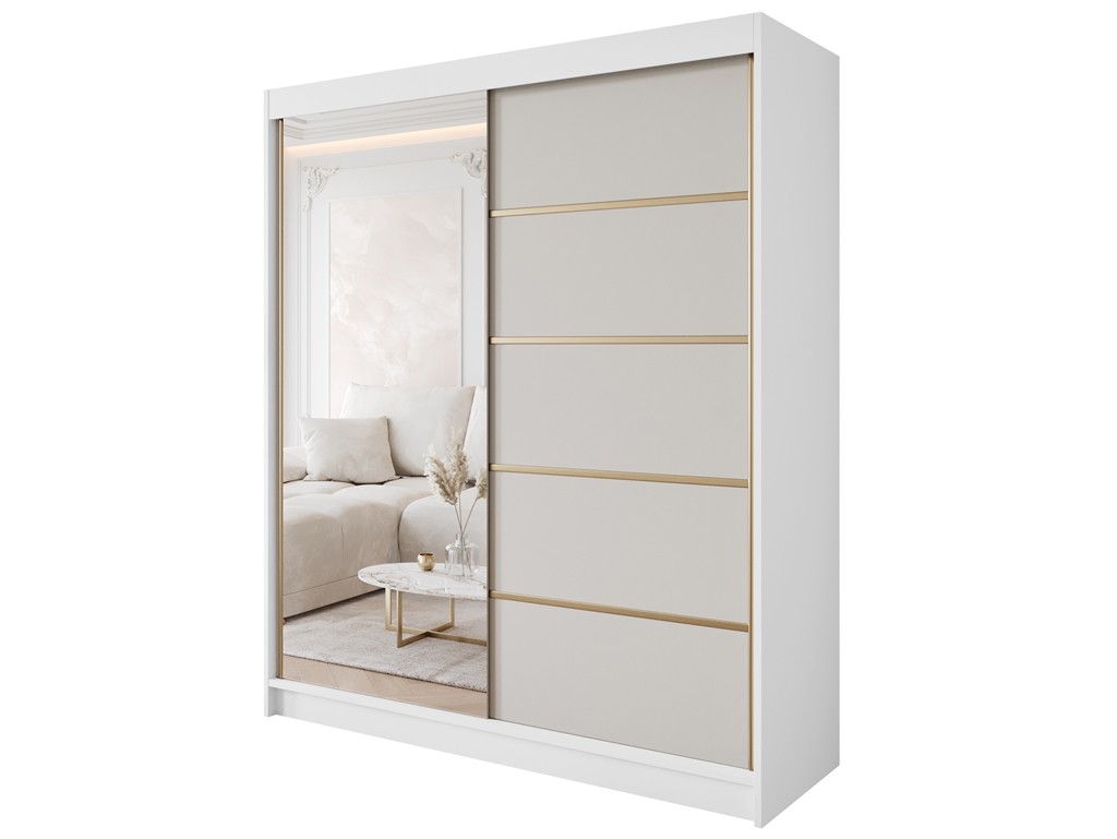 Szafa przesuwna Gold 3 biały/kaszmir z lustrem 180 cm