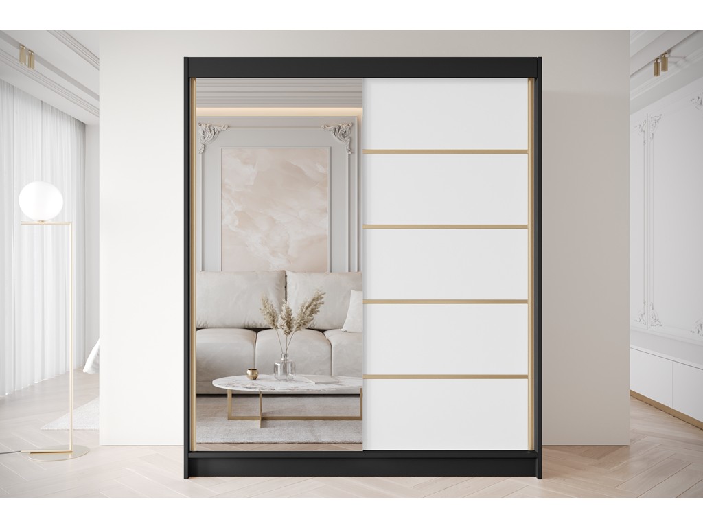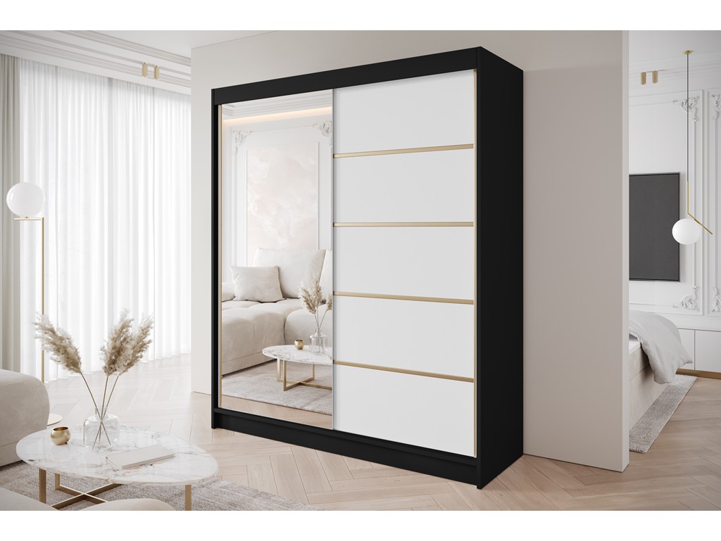 Szafa przesuwna Gold 3 czarny/biały z lustrem 180 cm
