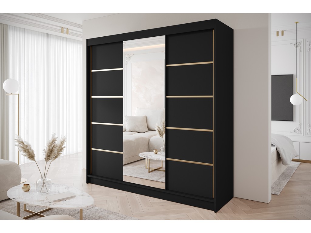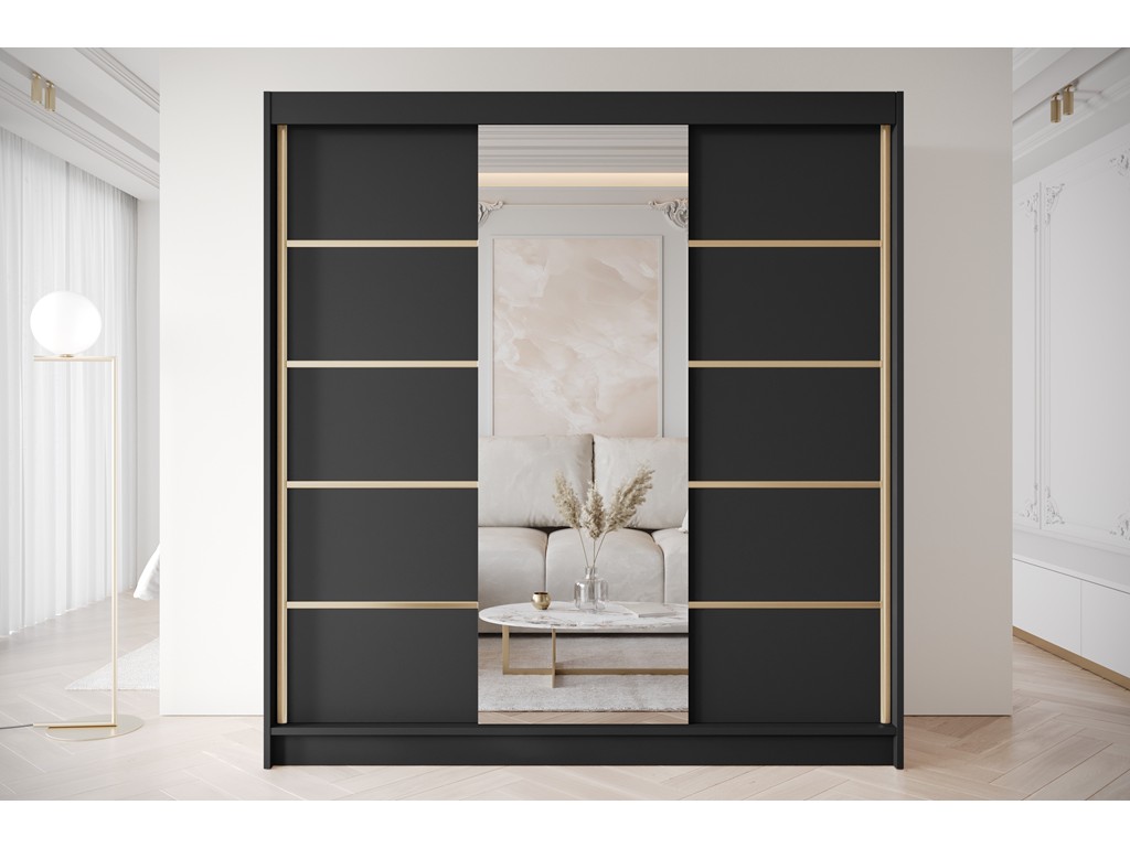 Szafa przesuwna Gold 6 czarna z lustrem 200 cm
