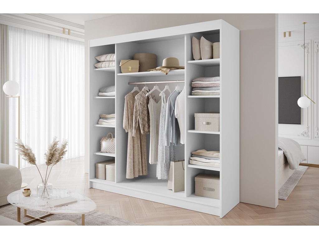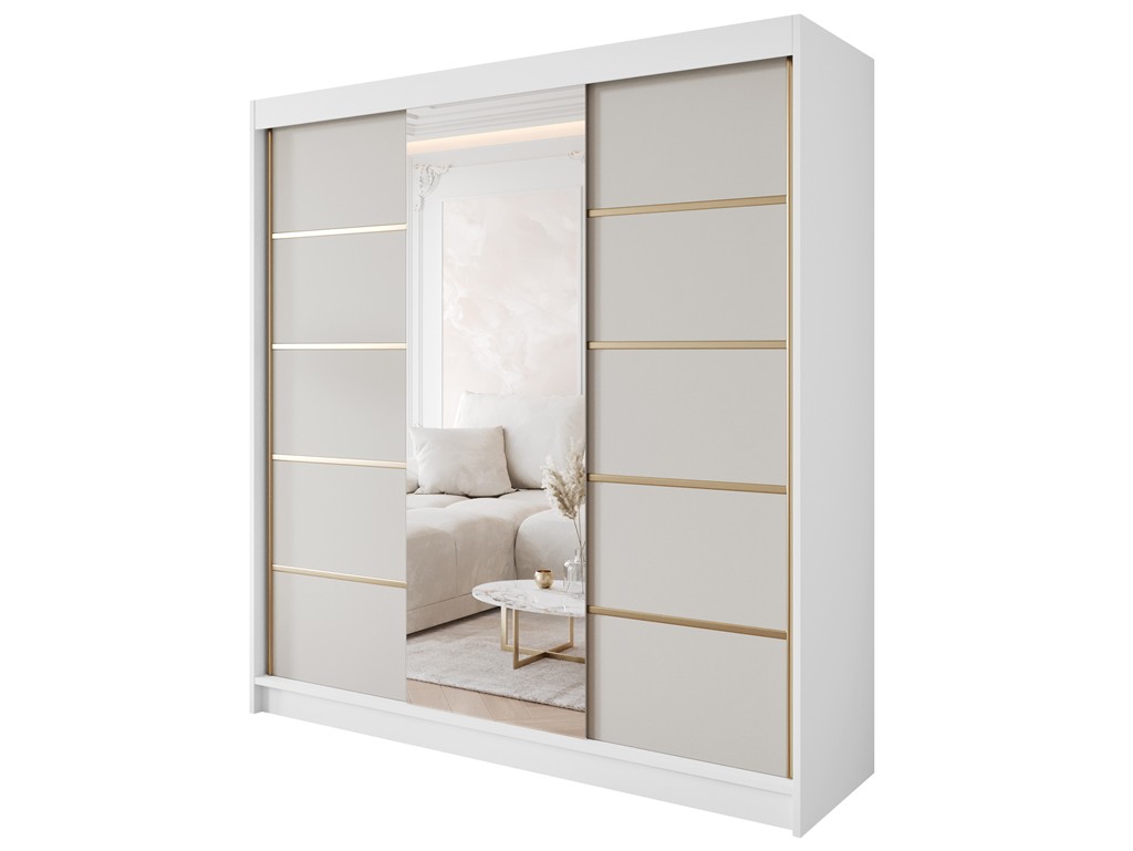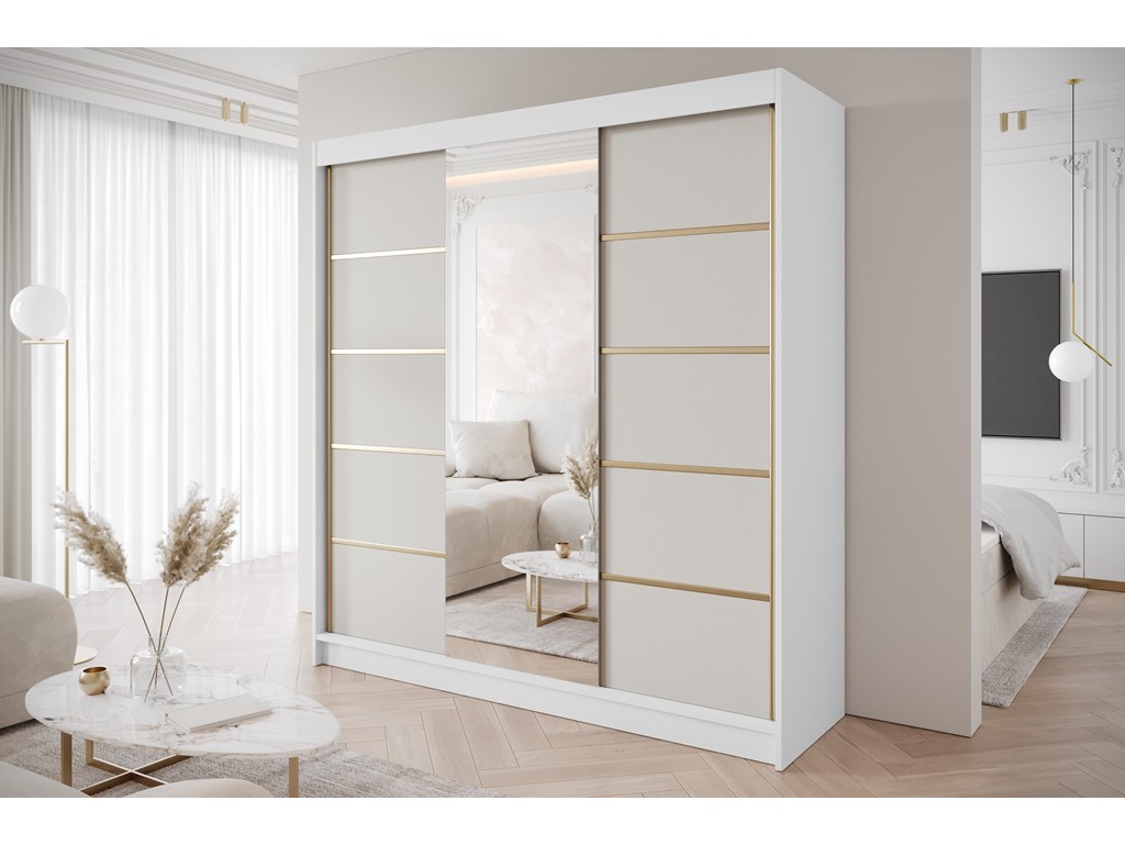 Szafa przesuwna Gold 6 biały/kaszmir z lustrem 200 cm