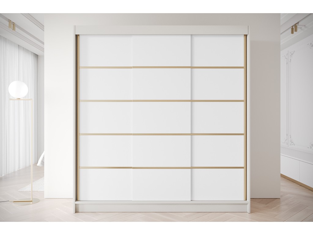 Szafa przesuwna Gold 7 200 kaszmir/biały to elegancki i funkcjonalny mebel do sypialni lub garderoby. Kaszmirowy korpus i białe fronty z subtelnymi złotymi detalami tworzą harmonijną całość, wprowadzając ciepło i nowoczesny styl do wnętrza. Dostawa w ciągu 5-12 dni roboczych. ⟵Zobacz całą kolekcję szaf Gold