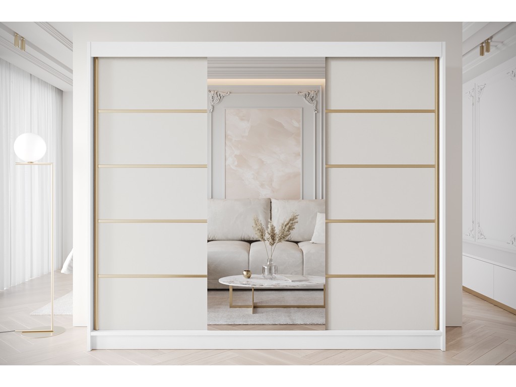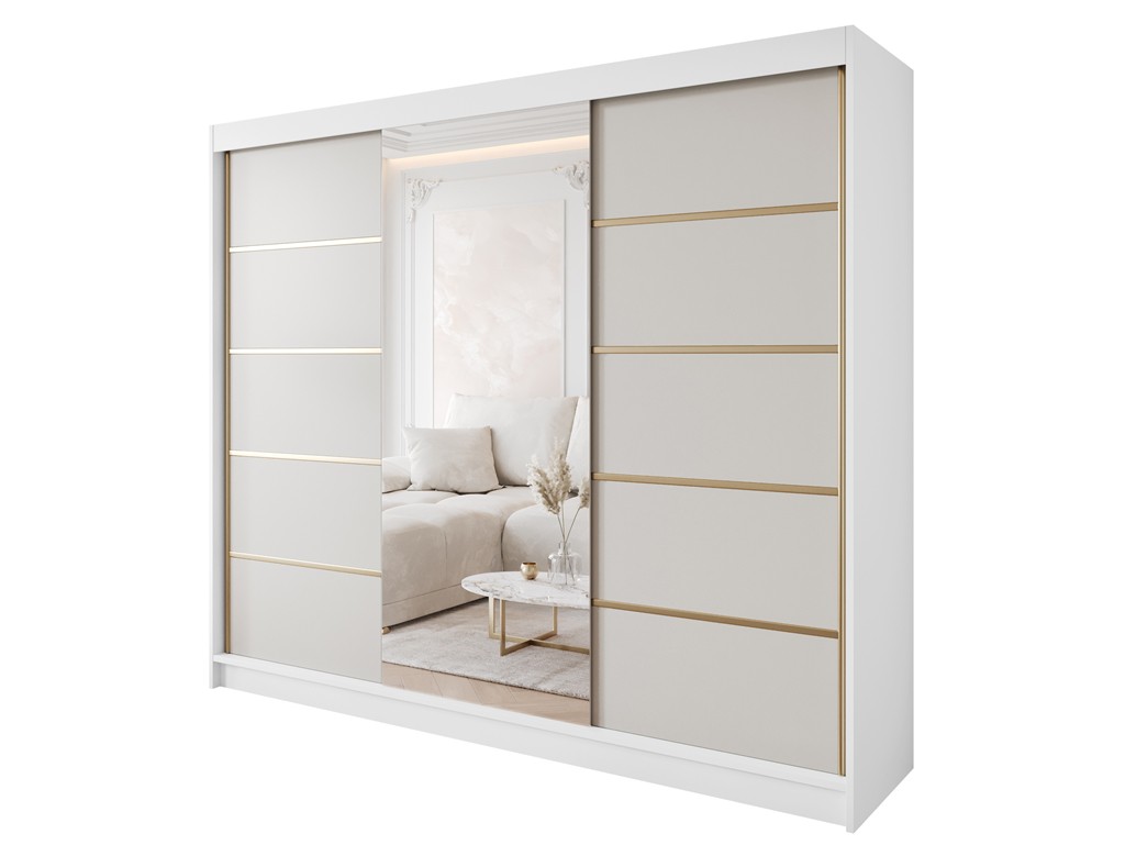 Szafa przesuwna Gold 6 biały/kaszmir z lustrem 250 cm