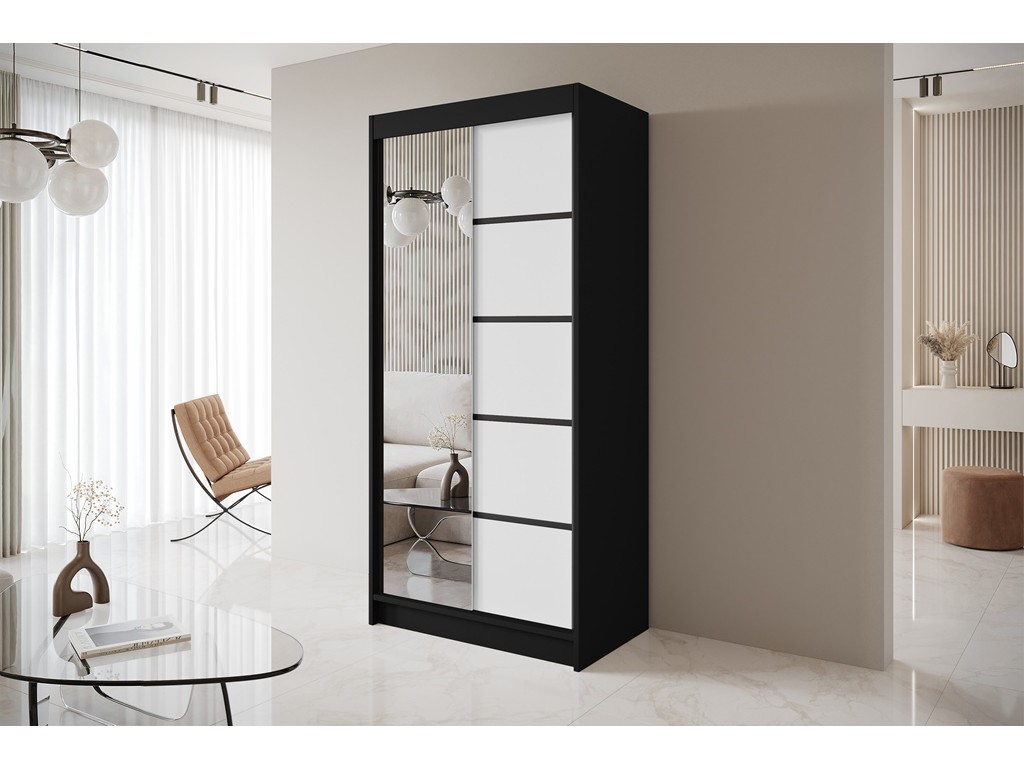 Szafa przesuwna Nero 3 czarny/biały z lustrem 100 cm