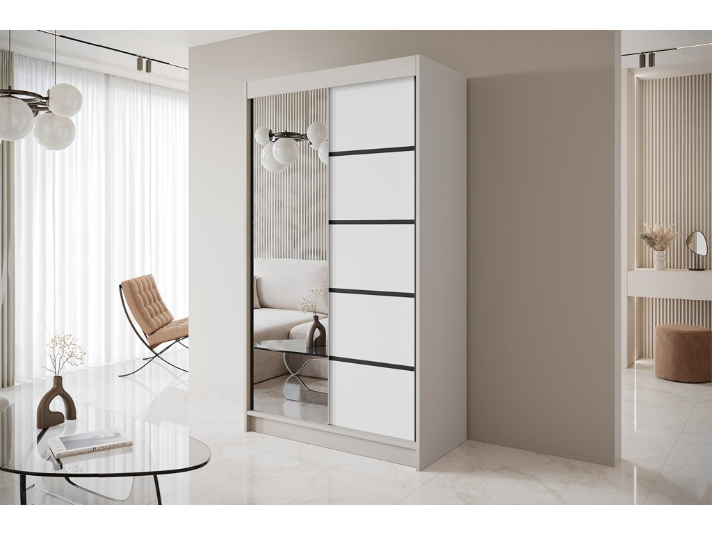 Szafa przesuwna Nero 3 kaszmir/biały z lustrem 120 cm