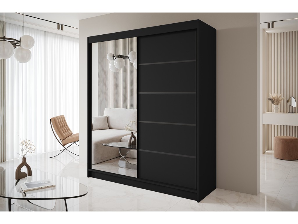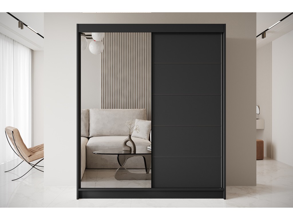 Szafa przesuwna Nero 3 czarna z lustrem 180 cm