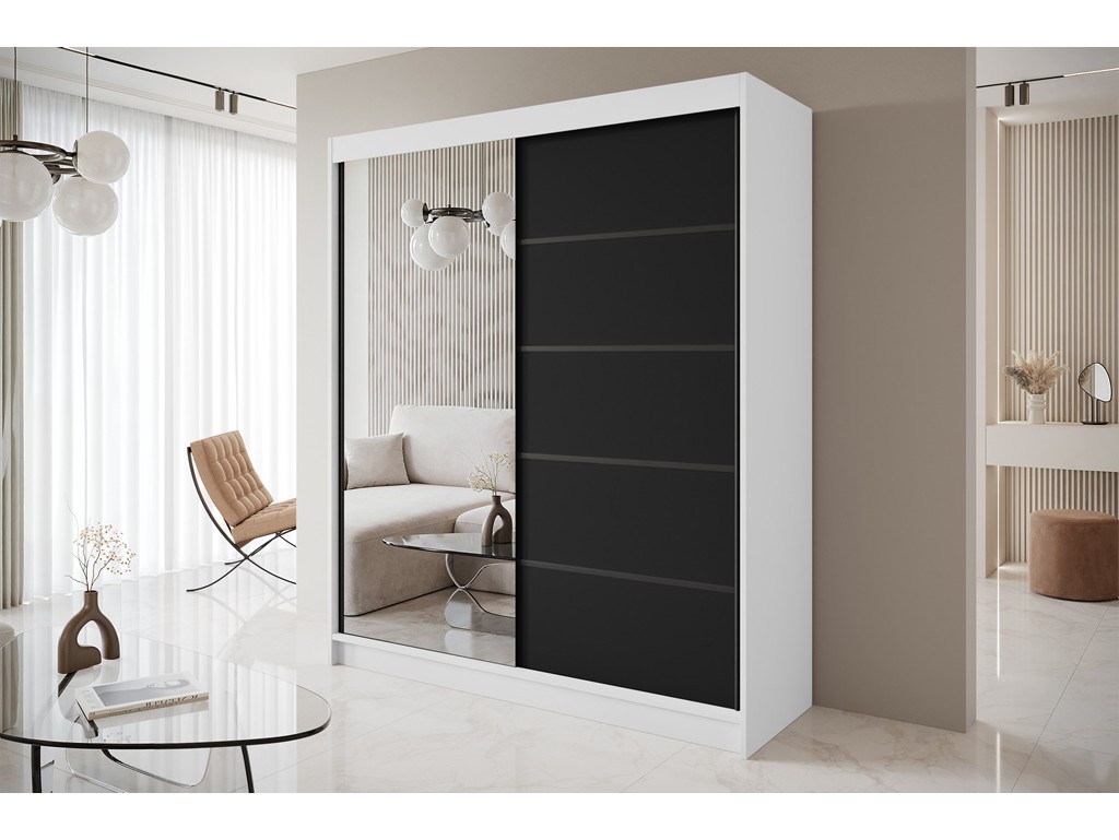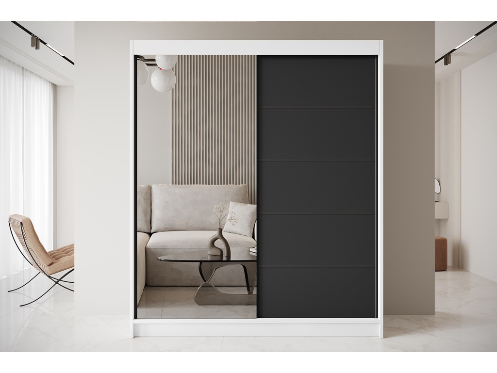 • Szafa przesuwna Nero 3 czarny/biały z lustrem 180 cm